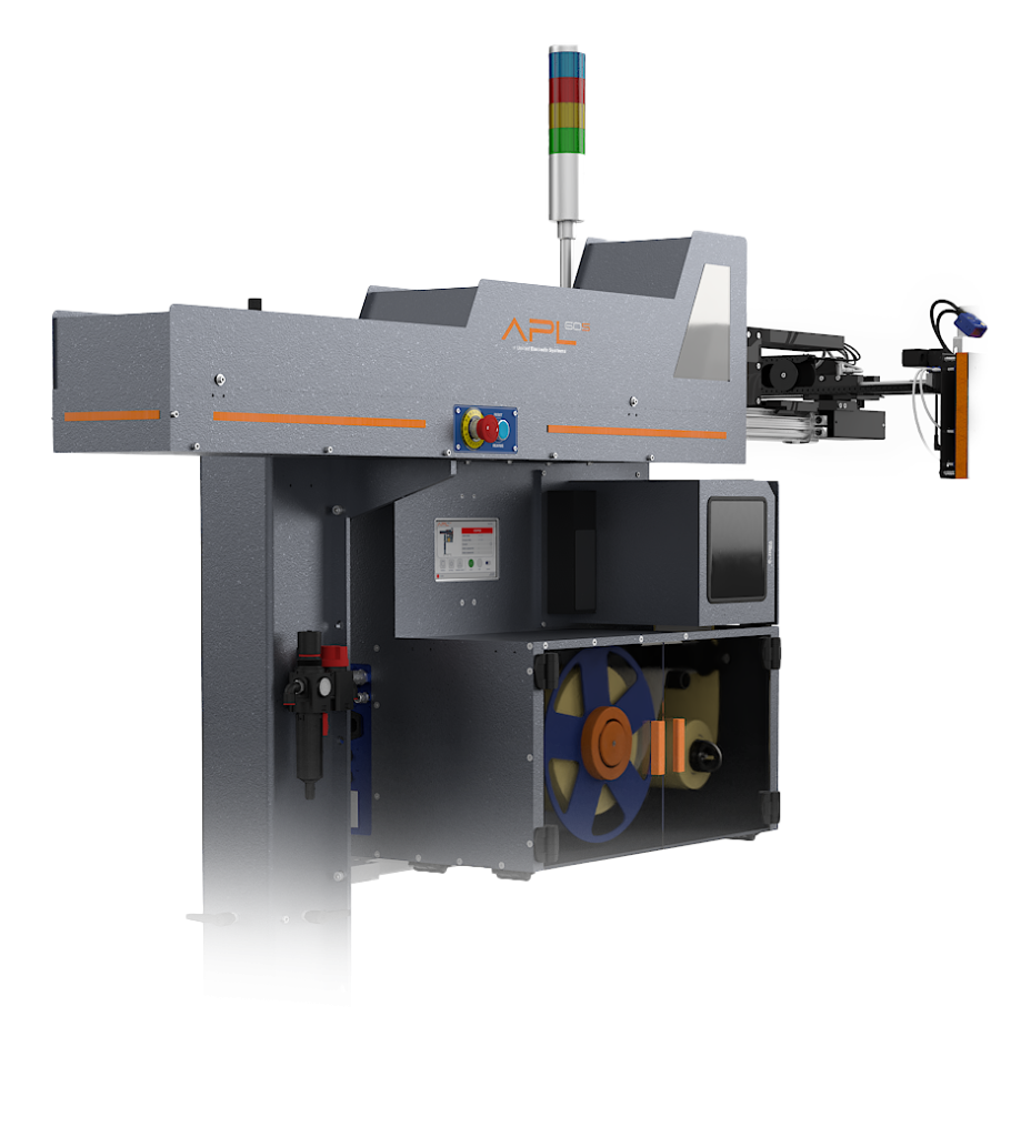 Labeling of pallets with variable heights on 1, 2 or 3 sides.